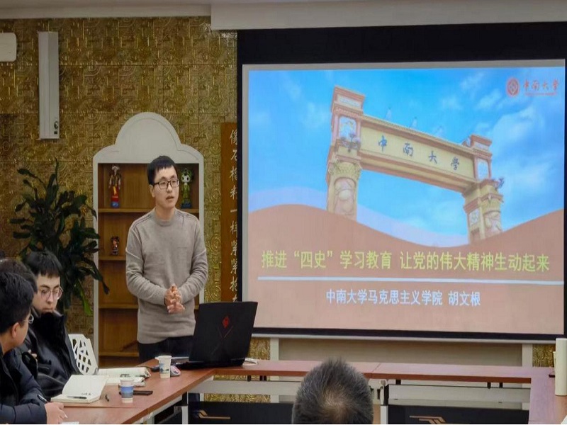 青年教师胡文根博士以“推进‘四史’学习教育,让党的伟大精神生动起来”为主题进行发言。他讲到推进“四史”学习教育,就是为了在波澜壮阔的历史书写中凝练中国共产党伟大精神的历史认知,以此回答党从哪里来、红色政权从哪里来、中国特色社会主义从哪里拉开序幕等关键问题。