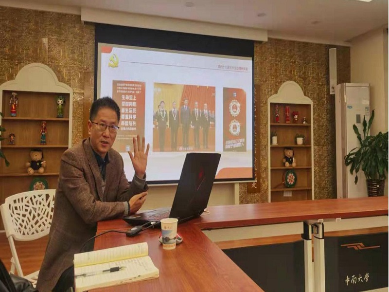 张金学教授以“用中国精神激励新时代青年有作为勇担当”为题发言,他从党的十九届五中全会精神解读入手,建议全体辅导员在思政教育的日常工作中,宣讲好“十四五规划和2035远景规划建议”,用中国共产党建党近百年来领导人民为实现中华民族伟大复兴征程上产生的“中国精神”激励青年学生,对照青年学生共同见证的“抗疫精神”“探月精神”启发学生在社会主义现代化建设的伟大征程中接好棒,为中华民族伟大复兴贡献力量。