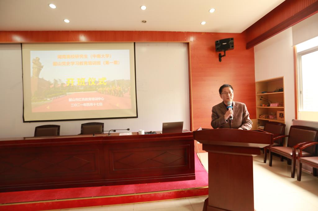 上午9点,参与活动的42名师生学员参加了本次活动的开班仪式,同时也标志着湖南省高校研究生走进韶山学党史活动全面启动。开班仪式上,韶山红色教育培训中心执行院长毛敏向学员们表示欢迎,并详细的介绍了韶山在党史学习教育中的重要地位,张金学副书记向在场学员介绍了开展党史学习教育的重要性及开展此次培训班的目的,同时提出统一思想认识、聚焦目标任务和强化学习落实的具体要求,鼓励学员们准确把握党史学习要求,深刻领会韶山党史精神内涵,努力践行初心使命和责任担当。随后,湖南省人民政府参事、中共湖南省委宣传部原副部长、湖南省党史办原主任张志初为学员们主讲题为《领航青春正百年》的专题党课,他从百年之前、百年之路和百年之悟三个方面深刻阐释了中国共产党百年发展历程,用通俗易懂的语言对党史进行深入浅出的讲解,引经据典,以小见大,收获在场学员的阵阵掌声。