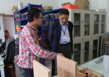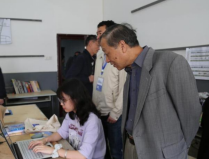 党委书记喻跃龙、院长石磊、副院长郑伯红、副院长解明镜、城规系系主任李铌等人员的陪同下观看新校区艺术楼设计专业及美术书法专业毕业展览、视察新校图书馆、A座教学楼专业教室情况、粉冶院展厅等地,随后视察了创南楼图书室、城规专业教室(图四)、档案室以及实验室(图五),多方位的考察了教学设施、办学条件、教学管理情况。