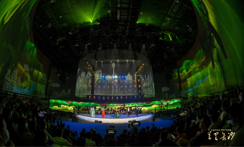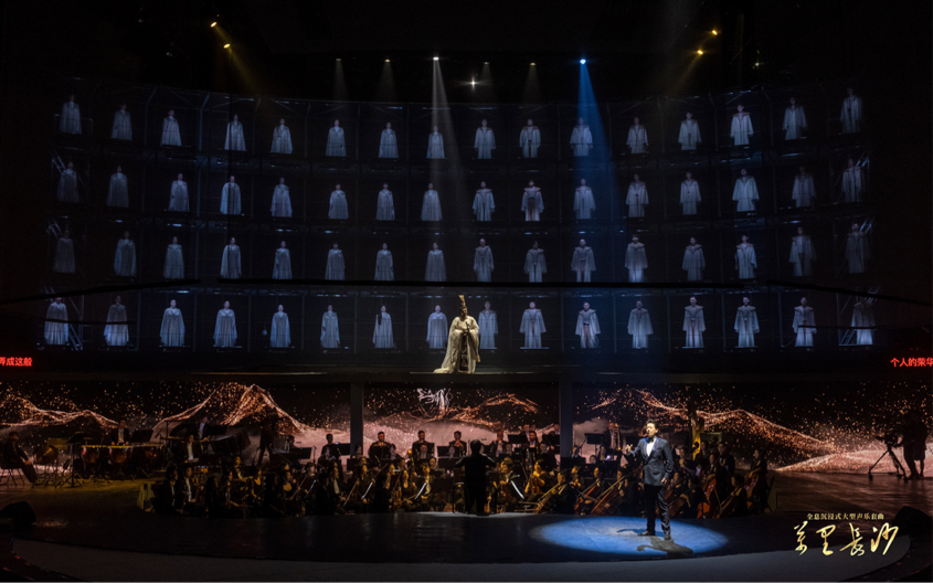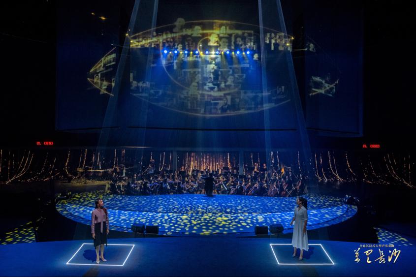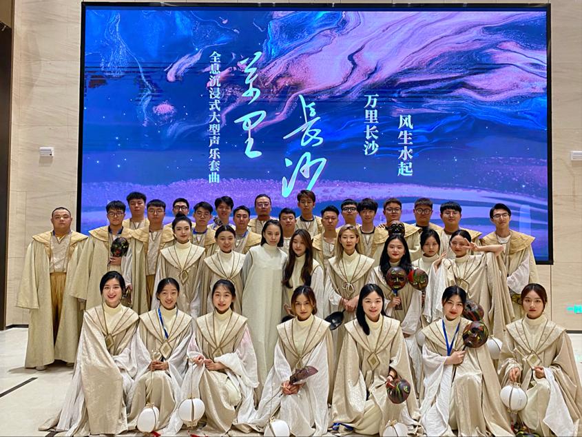 9月20日晚,由长沙市委宣传部主办,中南大学音乐表演2018级全体同学参演的全息沉浸式大型声乐套曲《万里长沙》在长沙马栏山视频文创园首演圆满结束。中南大学音乐表演2018级全体同学在中国共产党百年华诞之际,用艺术和青春汗水为党献礼,践行当代青年的使命担当。