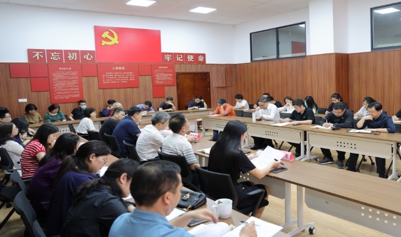 学习宣传贯彻工作进行了具体布置,一是以支部和系为单位结合近期工作安排组织集中学习。全体党员和师生员工要认真学习、深刻领会大会精神,深刻把握新形势新任务新要求,把智慧和力量凝聚到实现大会确定的各项目标任务上来。二是将目标任务细化分解、落实于行,要以只争朝夕的精神抓好各项工作的落实,充分调动全院师生员工的积极性主动性创造性,立赶超之志,鼓奋进之气,创发展之业,按照大会部署,奋力投身学校内涵式高质量发展新征程!