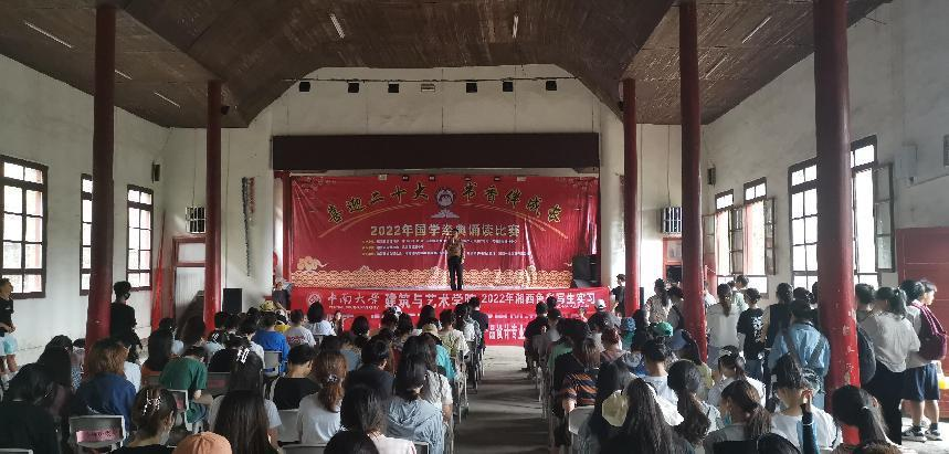 300余名师生进行了交流,他首先感谢花垣三中和景森写生机构给中南大学师生提供了良好的实习条件,也感谢带队老师的辛苦付出,同时介绍了中南大学发展取得的主要成绩,并对实习的同学们提出了殷切希望,希望同学们充分利用好实习实践教学环节,巩固专业知识,善于总结提升,做好疫情防控。希望老师们践行好为党育人,为国育才职责使命。石磊院长希望同学们要表现出中南学子的良好素质,用心用情去体验魅力湘西的人文、地理、民俗和地域特色,汲取湘西的优秀文化和建筑营养,取之于湖南,用之于湖南,服务地方经济发展。同时也再次强调了实习安全管理。