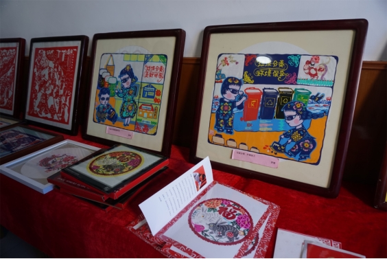 在长沙县江背镇新晴剪纸工作室,长沙县县级非遗“民间剪纸技艺”代表性传承人罗晴(下图右一)向我们调研团一行介绍她的剪纸作品,并回答师生们提出的各种问题。长沙县的民间传统剪纸分为单色剪纸、彩色剪纸、立体剪纸三大类,常常把多种物象组合在一起,表达丰衣足食、人丁兴旺、健康长寿、万事如意的理想和愿望。在传统的剪纸基础上她延伸剪纸的表现内容,扩展了剪纸的现代应用场景。