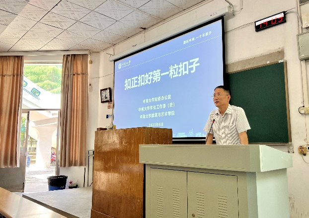 会议上,院党委副书记张金学做主题为“扣正扣好第一粒扣子,廉说中南,一个不能少”的培训。他首先指出,广大毕业生即将走向社会,面临诸多选择与诱惑,仍应坚定理想信念,听党话,跟党走。随后,他从青年学生肩上的重担、廉洁与廉洁从业以及历史使命和担当三个方面为毕业生上了生动亦深刻的一堂课。其中,他详细讲述了关于好干部的时代特征及青年学生肩上的光荣使命,着重强调了廉洁与廉洁从业的丰富内涵,要求在座毕业生深刻体会并铭记于心。最后,他指出当代青年学生责任重大,更应扛起一代代人的担当,为全面建设社会主义现代化国家贡献力量的同时,也应经营好自己未来的家庭,不断努力、持续奋斗。