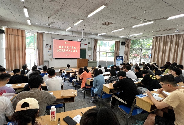 2023届毕业生教育大会。本次会议由院党委副书记张金学主讲,毕业班辅导员陈乐凯老师、巫建辉老师、李萌萌老师、李卉淼老师以及全体本科和研究生毕业生参会。