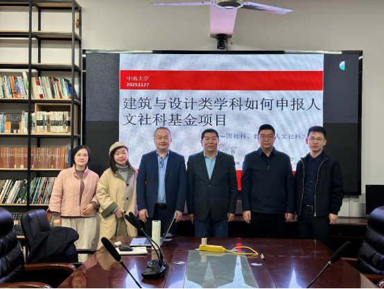 2025年11月27日下午、28日上午,中南大学名师名家论坛特邀广州大学曹伟教授在天心校区第二综合楼203图书室举行《建筑与设计类学科如何申报人文社科基金项目——国社科、教育部人文社科为例》《土建类专业当下•现状•挑战•破局•出路》主题讲座。解明镜副院长主持报告会,建筑系和城乡规划系师生参加报告会。