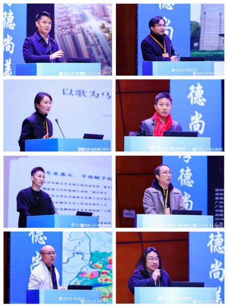 座谈会后,专业办学发展论坛接续进行。八位优秀校友依次带来主旨分享。沈驰以《我在岭南做建筑》为题,拆解岭南建筑地域文化与现代设计的融合之道;陈日红的《从云麓园到昙华林》串联校园学习与实践经历;李凯丽在《以歌为马,不负韶华》中分享音乐教育与舞台实践的双向赋能经验;周振鸿用《从设计到创业的分享》为师生提供实战避坑指南;李冠以《从舞台到云端》拆解舞者跨界新媒体的运营逻辑;周小龙、朱海和、欧偲则分别以《知来路去处》《与时代同行》《艺脉相承》为题,分享建筑装饰设计的人文思考、城乡规划的行业趋势及雕塑创作中的匠心传承等。